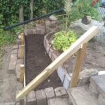 Het terras aan het water werd opnieuw opgebouwd en ingericht, voor een belangrijk deel door hergebruik van materialen die reeds aanwezig waren bij de klant. Duurzaam en Circulair! Toen konden we de aarde aanvullen met compost. Tot slot hebben we het terras met een selectie overwegend inheemse planten en kruiden opnieuw beplant, met als resultaat een tevreden en blije klant.